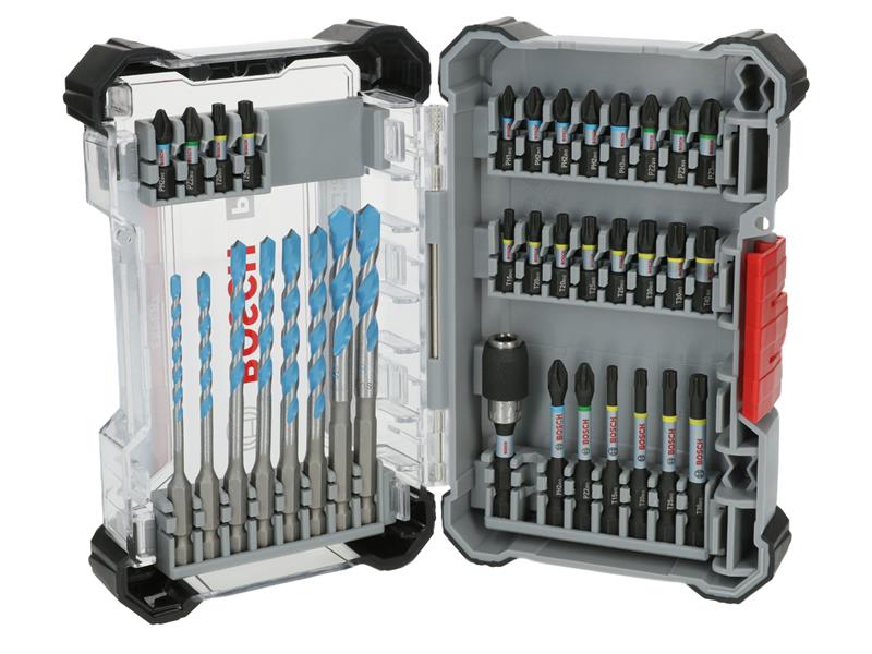 The 35 Piece Bosch PRO Impact Mixed Set for heavy-duty screwdriving applications and precise drilling in various materials. A great choice for interior fitters and installers who need reliable screwdriver bits and drill bits.
