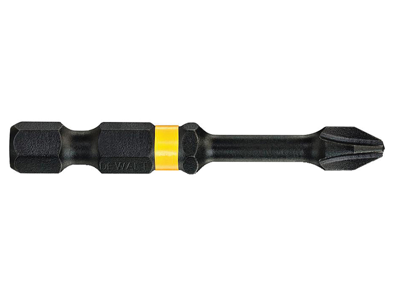 The DEWALT Impact Torsion Phillips Bits have a 15° torsion zone that allows the screw driver bit to flex rather than break and a full fit head prevents the rounding of the screw head and prevents ‘cam out’ (bit head slipping out of screw head due to the turning force). The magnetic screwlock enables tasks to be completed quicker and easier, reducing instances of dropped or lost screws.