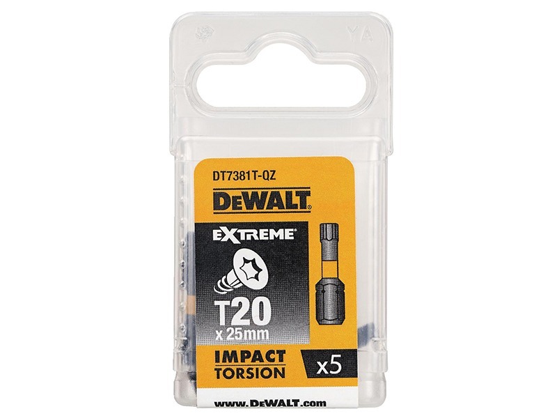 Pack of 5 DEWALT Impact Torsion Bits TX20 25mm