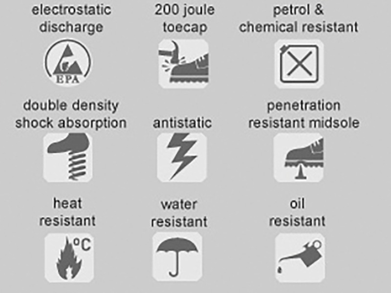 They are fitted with a steel toecap that has been tested to 200 Joules. Also a steel midsole for underfoot protection. Fitted with a comfort insole for all-day comfort with a Phylon/rubber outsole.