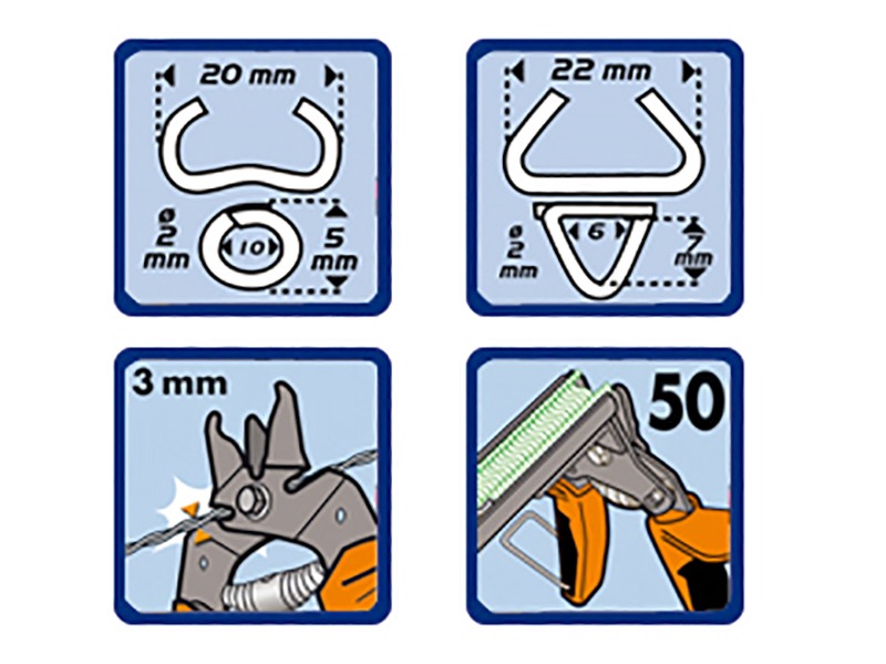 The Edma Top Grafer 20/22 Hog Ring Pliers have a robust, lightweight design and are supplied with an easy to fit magzine cartridge, that can hold upto 50 hog rings. The magazine can be removed, for easy storage, via the easy fit screw.