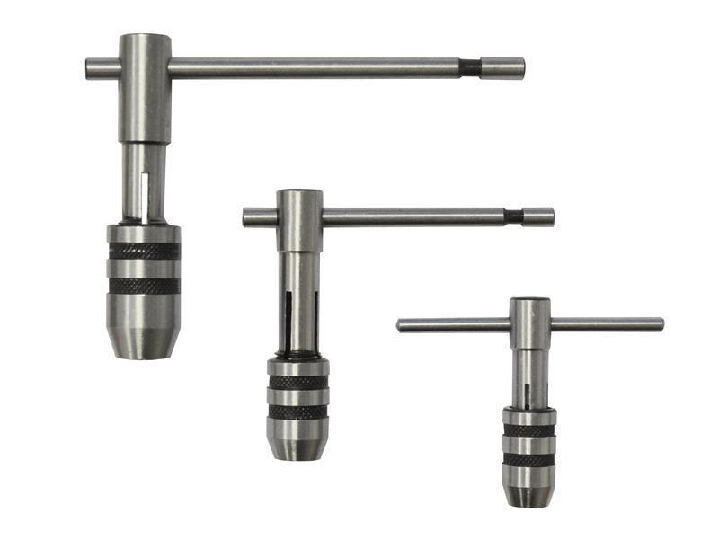 The Faithfull three piece set of hand tap wrenches designed for use in hand tapping and reaming operations. Each wrench features a heavy-duty ductile steel body with a knurled chuck cap. A four point clamping system helps to increase the range of tap sizes that can be used and provide a firm non slip grip for accurate control.