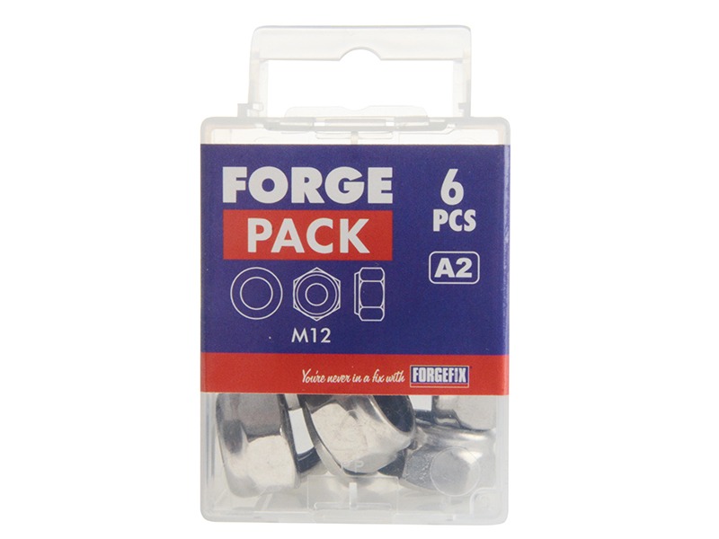 ForgeFix Nyloc Nuts & Washers A2 Stainless Steel M12 ForgePack 6