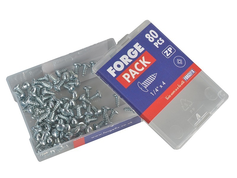 ForgePack of 80 ForgeFix Self-Tapping Screws Pozi Compatible Pan Head ZP 1/4in x 4