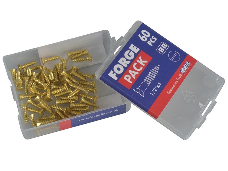 ForgeFix Wood Screw Slotted CSK Brass 1/2in x 4 ForgePack 60