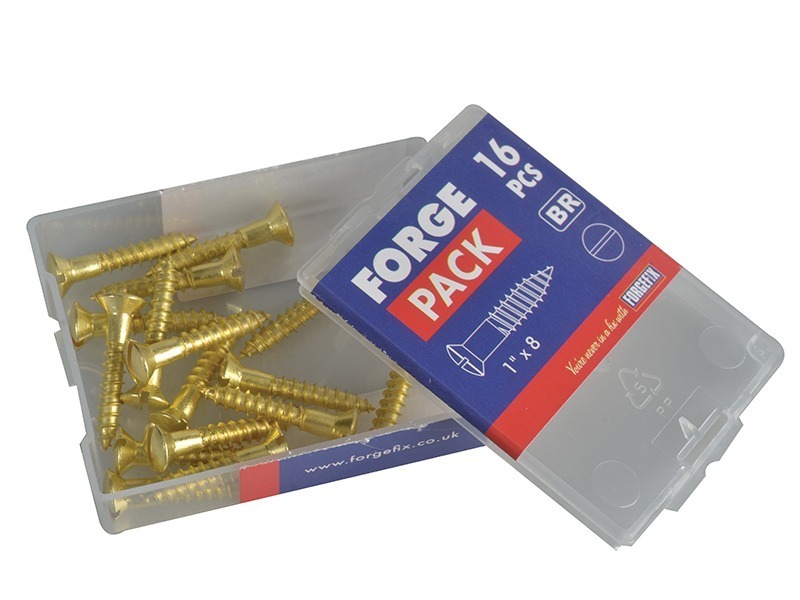 ForgePack of 16 ForgeFix Wood Screws Slotted CSK Brass 1in x 8