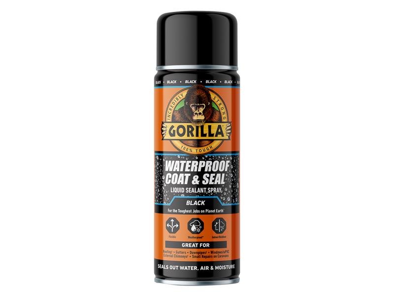 The Gorilla® Waterproof Coat & Seal Spray is a flexible, rubberised coating which seals out water, air and moisture. The applicator nozzle has a controlled spray pattern providing a clean, even coat. Once applied, the self leveling formula smoothly covers small gaps and cracks ensuring a watertight seal. When dried, Gorilla Waterproof Patch & Seal Spray is paintable and temperature/UV resistant resulting in lasting repairs.