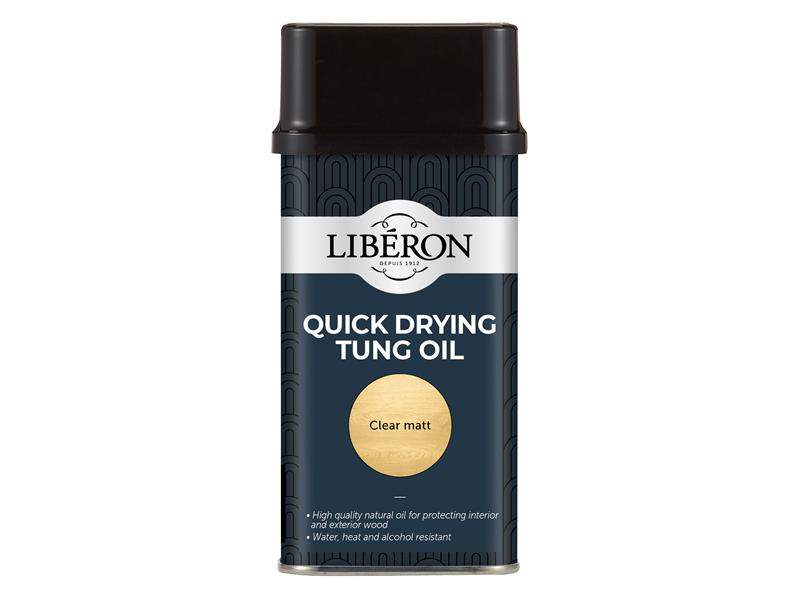 Liberon Quick Drying Tung Oil is a high quality natural oil for protecting interior and exterior wood. It provides a hard-wearing finish, and is ideal for surfaces such as tables and furniture. A quicker drying version of Liberon Pure Tung Oil, each coat dries in approximately four hours, and is highly resistant to water, alcohol and food acids. Being a penetrating oil it allows the wood to age gracefully and develop a natural patina. It provides a long-lasting matt finish.