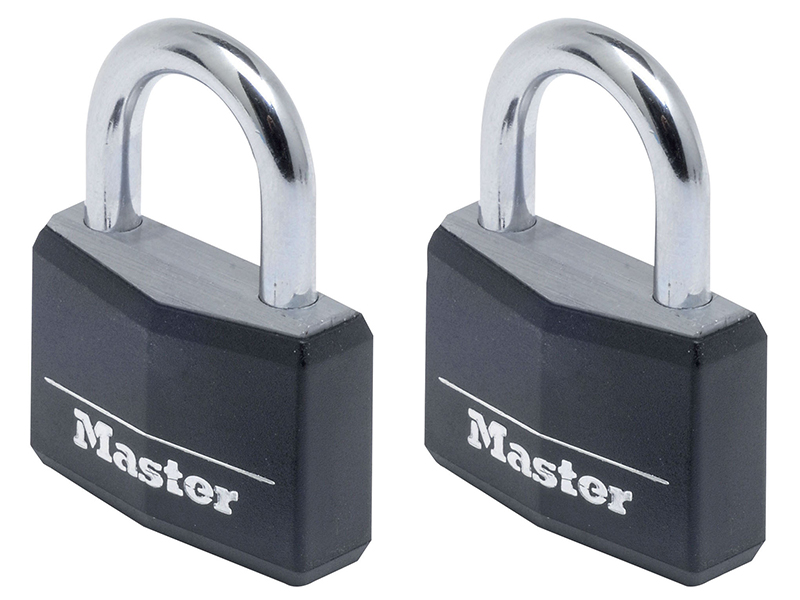 Master Lock Aluminium Black Vinyl Cover 40mm Padlock 4-Pin – Keyed Alike x 2