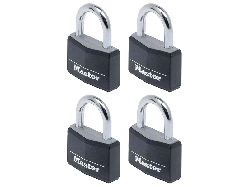Master Lock Aluminium Black Vinyl Cover 40mm Padlock 4-Pin – Keyed Alike x 4
