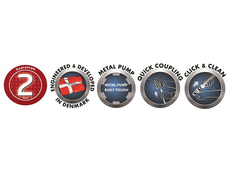 It has a reliable and long lasting universal motor, aluminium pump head and auto start stop. The standard Nilfisk bayonet coupling on the new G1 gun ensures compatibility to all the Nilfisk consumer accessories range. It has on board storage for the gun, lance, nozzles and cable. The Click&Clean nozzle system makes it quick and easy to change the nozzles. Quick connection of hose with integrated swivel function.
