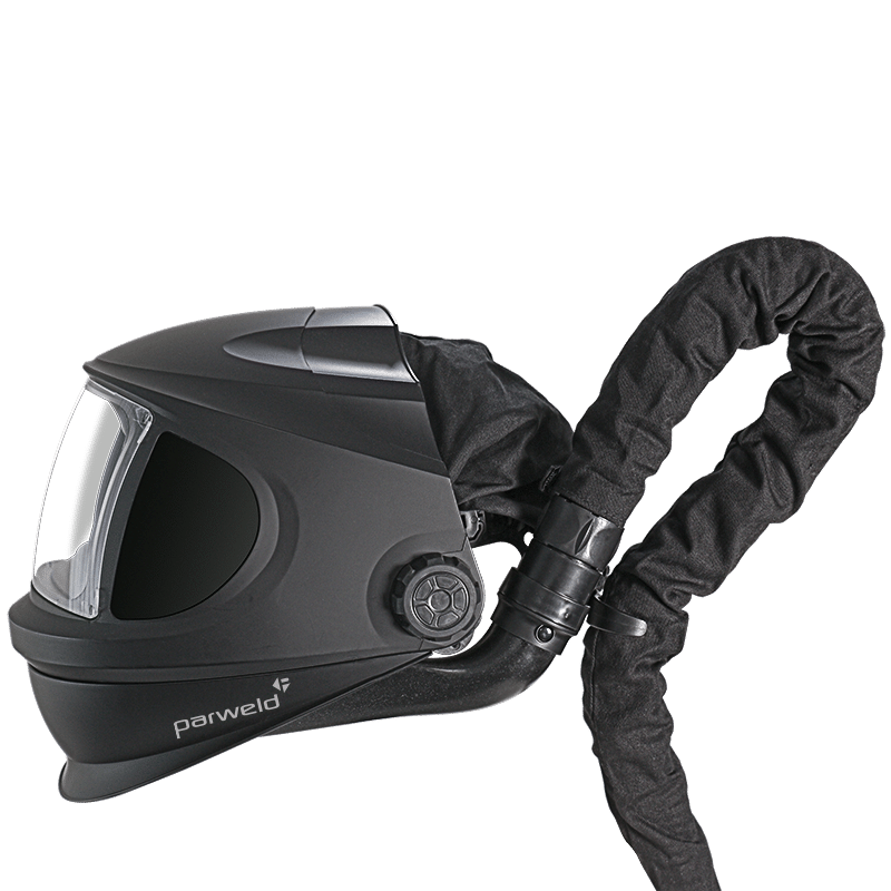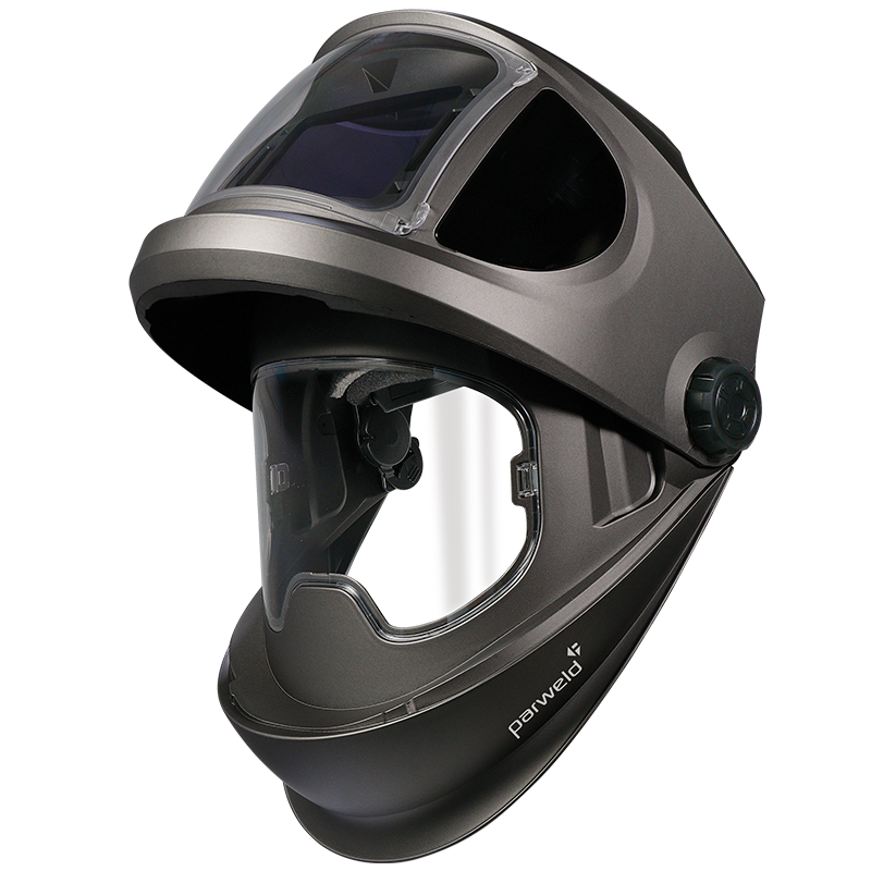 The Parweld XR943A PAPR (Powered Air Purifying Respirator) is designed for particulate environments, offering a flip-up welding and grinding helmet, a simple status display, and a smooth, ultra-quiet brushless motor with two-speed airflow control.