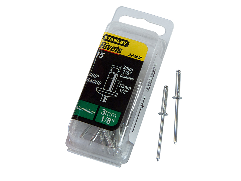 STANLEY® Hand Tools 1-PAA48 Aluminium Rivets Long 3 x 12mm Pack of 15