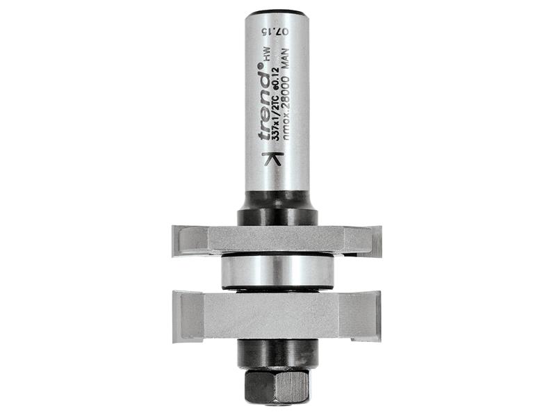 This Trend 337 x 1/2 tc is a one-piece tongue and groove set. The parts are inter-changed on the Arbor to alter the set up. It has a maximum timber thickness 22 mm and Minimum timber thickness 15 mm. Instructions for use are supplied.