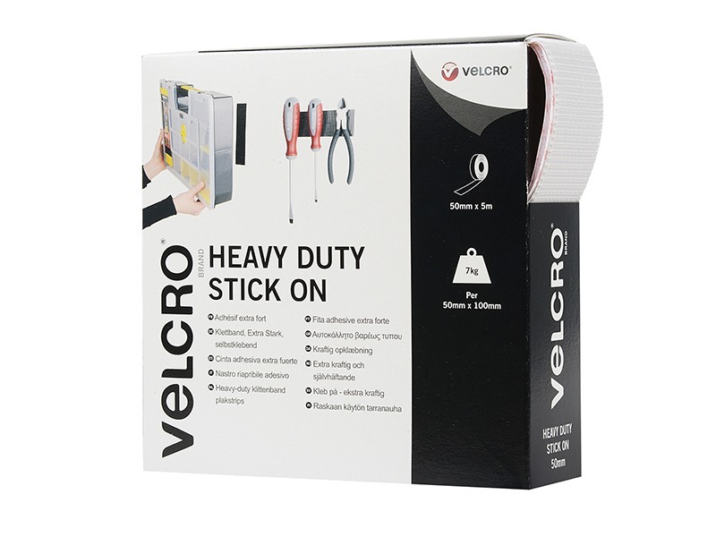 VELCRO® Brand Hook & Loop Heavy-Duty Stick On Tape is the quick and easy to use alternative to nails, screws and glues. With extreme holding power, holds weight up to 7kg per 50mm x 100mm piece (adhesive reaches maximum strength after 24 hours).